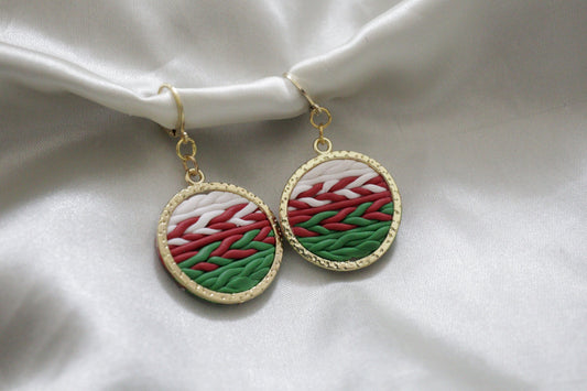 Black with White Nature Design Dangle Earrings with Chains and Zirconia
