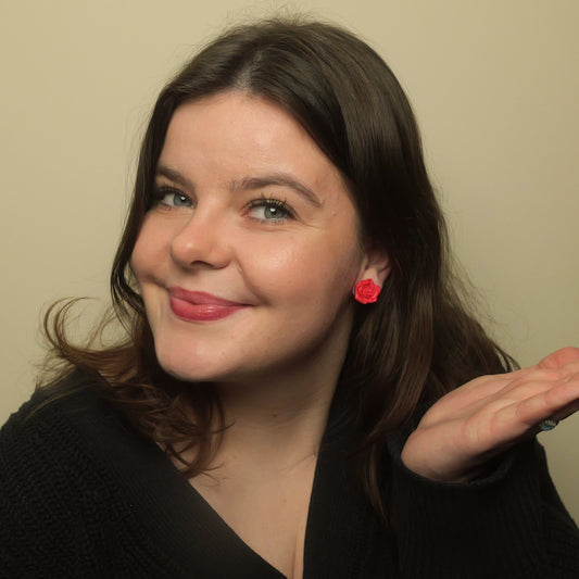 Polymer Clay Double Leaf Hoop Earrings - Red and Yellow