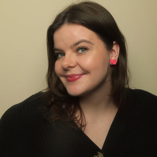 Textured Double Heart Studs - Red and Pink Swirls
