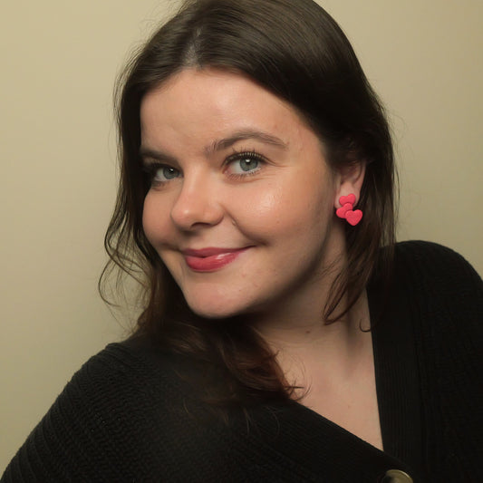Triple Heart Studs - Red and Pink Swirls