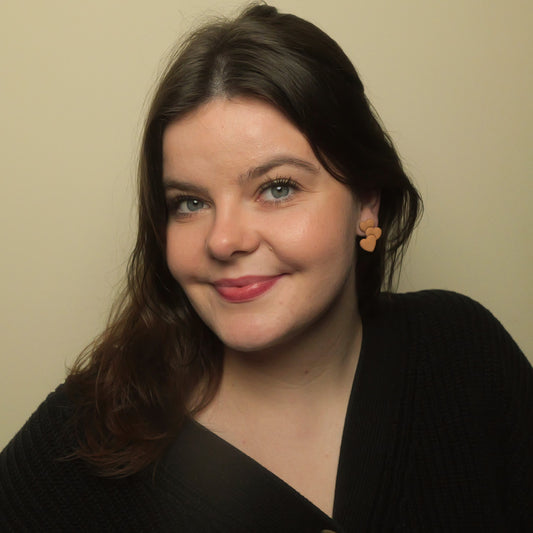 Textured Double Heart Studs - Soft Wheat