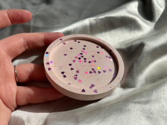 Holographic Heart Glitter Jesmonite Trinket Dish - Pink