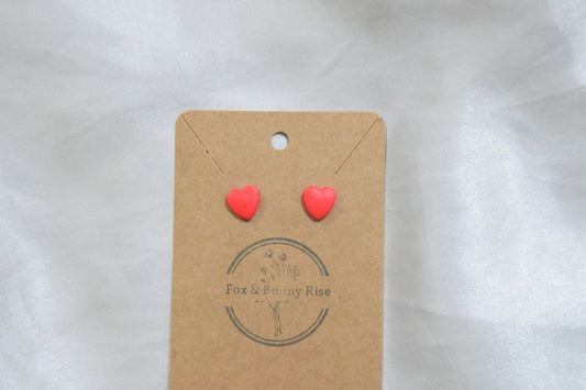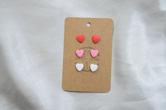 Polymer Clay Pink, Red and White Heart Stud Earrings Set