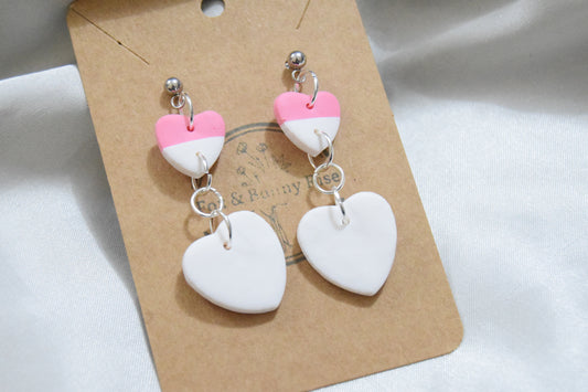 Polymer Clay White, Pink and Red Dangling Heart Earrings