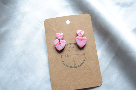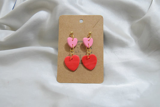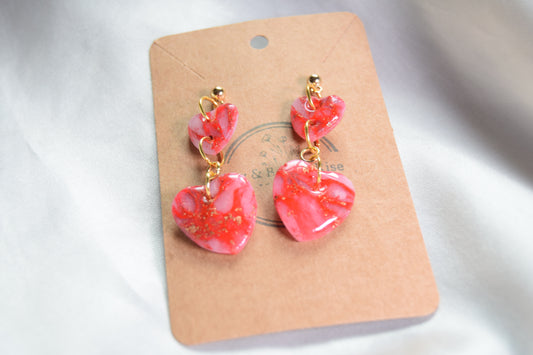 Polymer Clay Pink and Red Dangling Heart Earrings