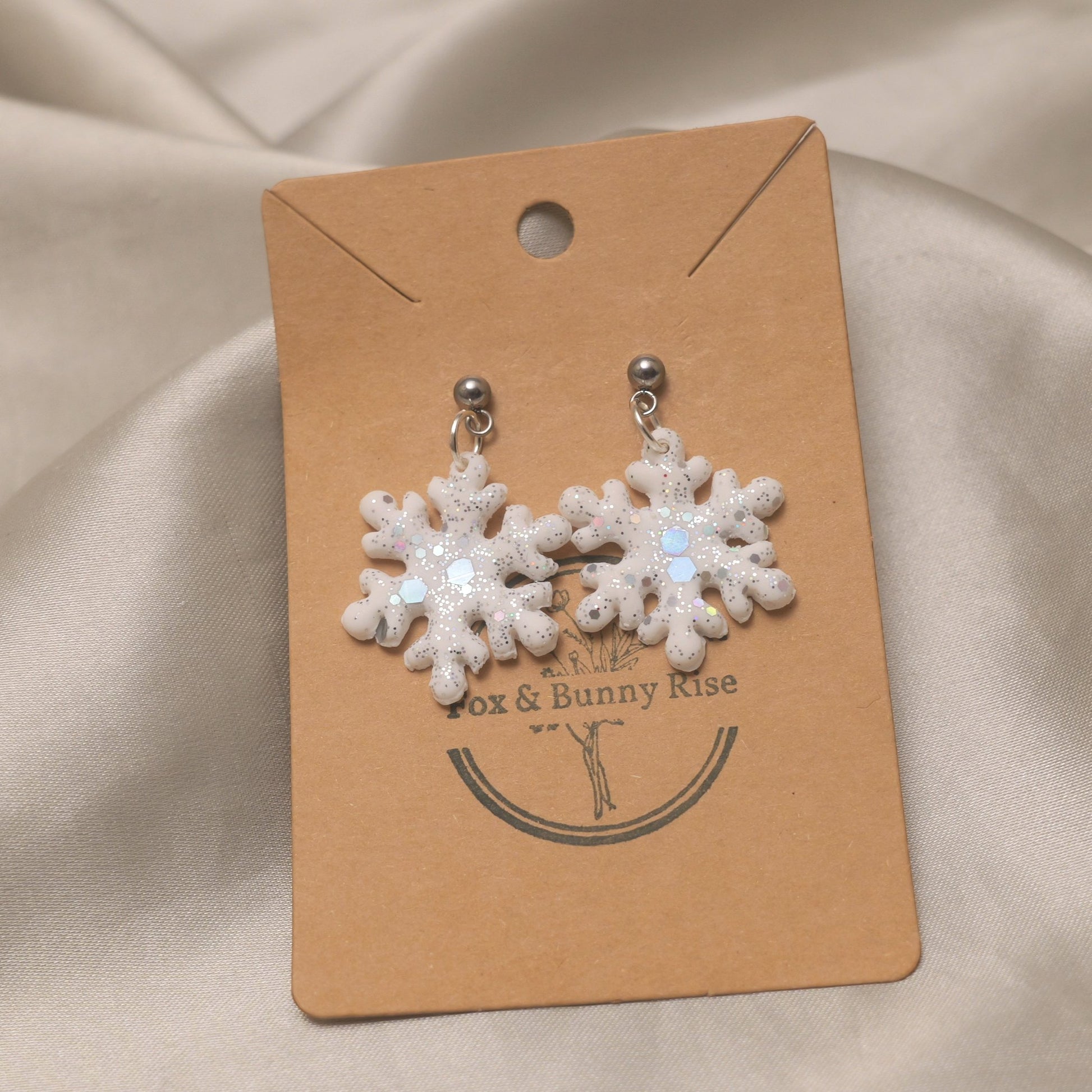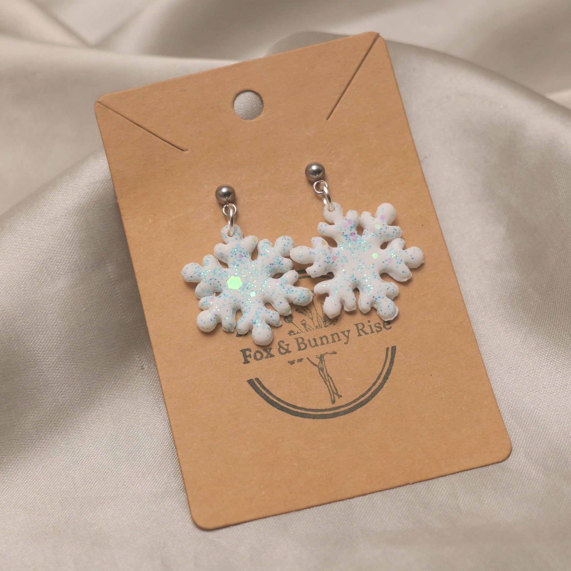 Glitter Snowflakes with Silver Ball Pin Dangle Earrings - Various Colours