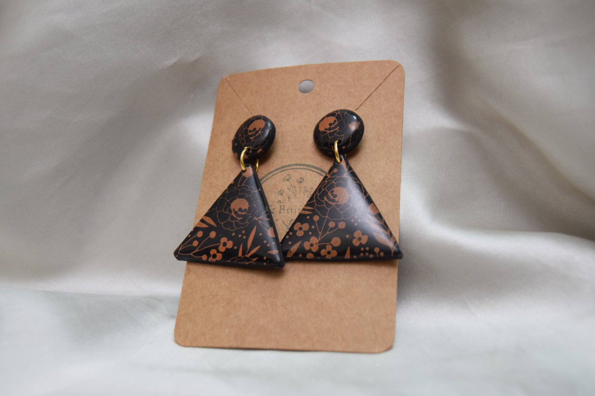 Halloween Flower Skull Triangle Polymer Clay Dangles